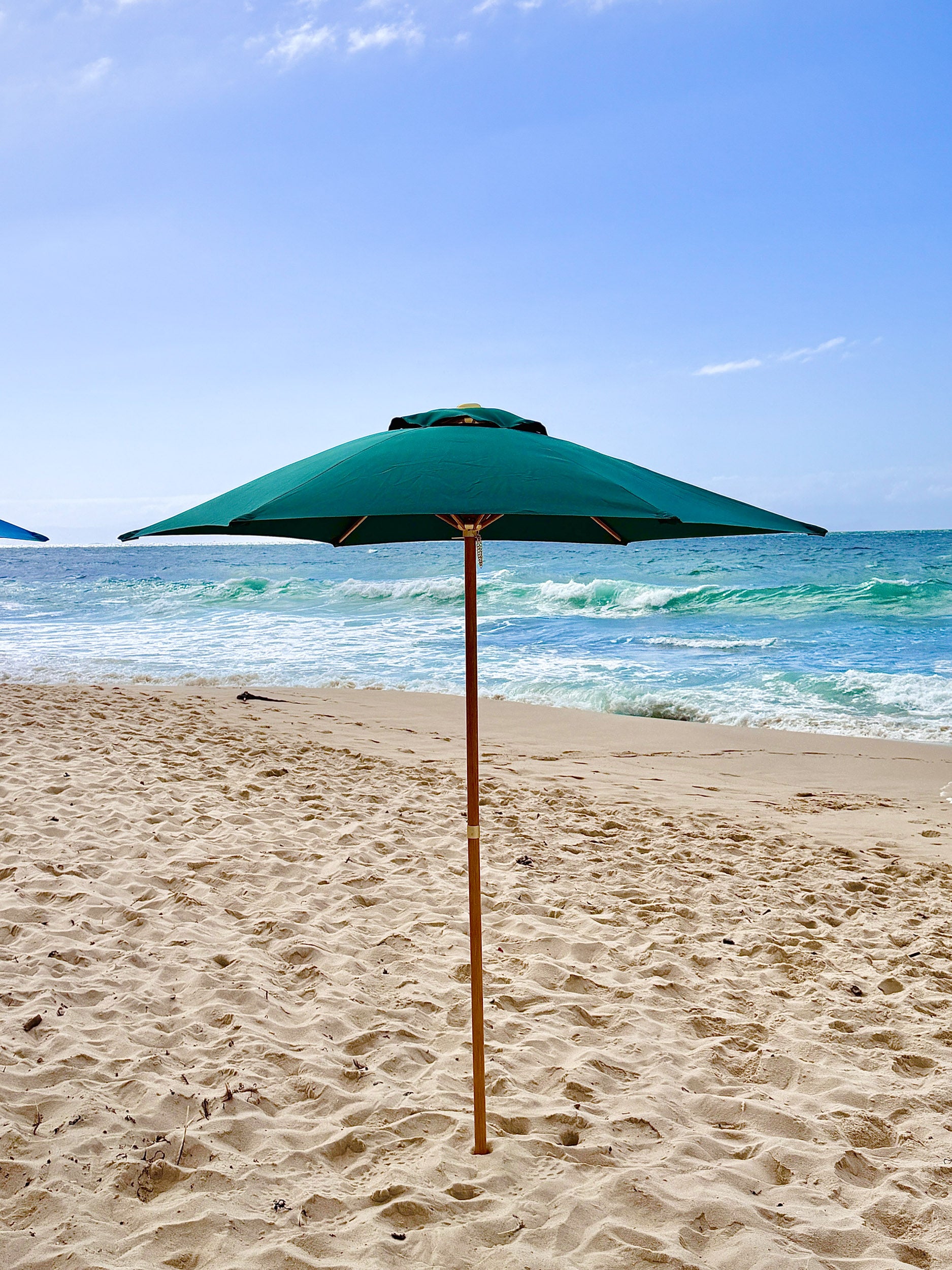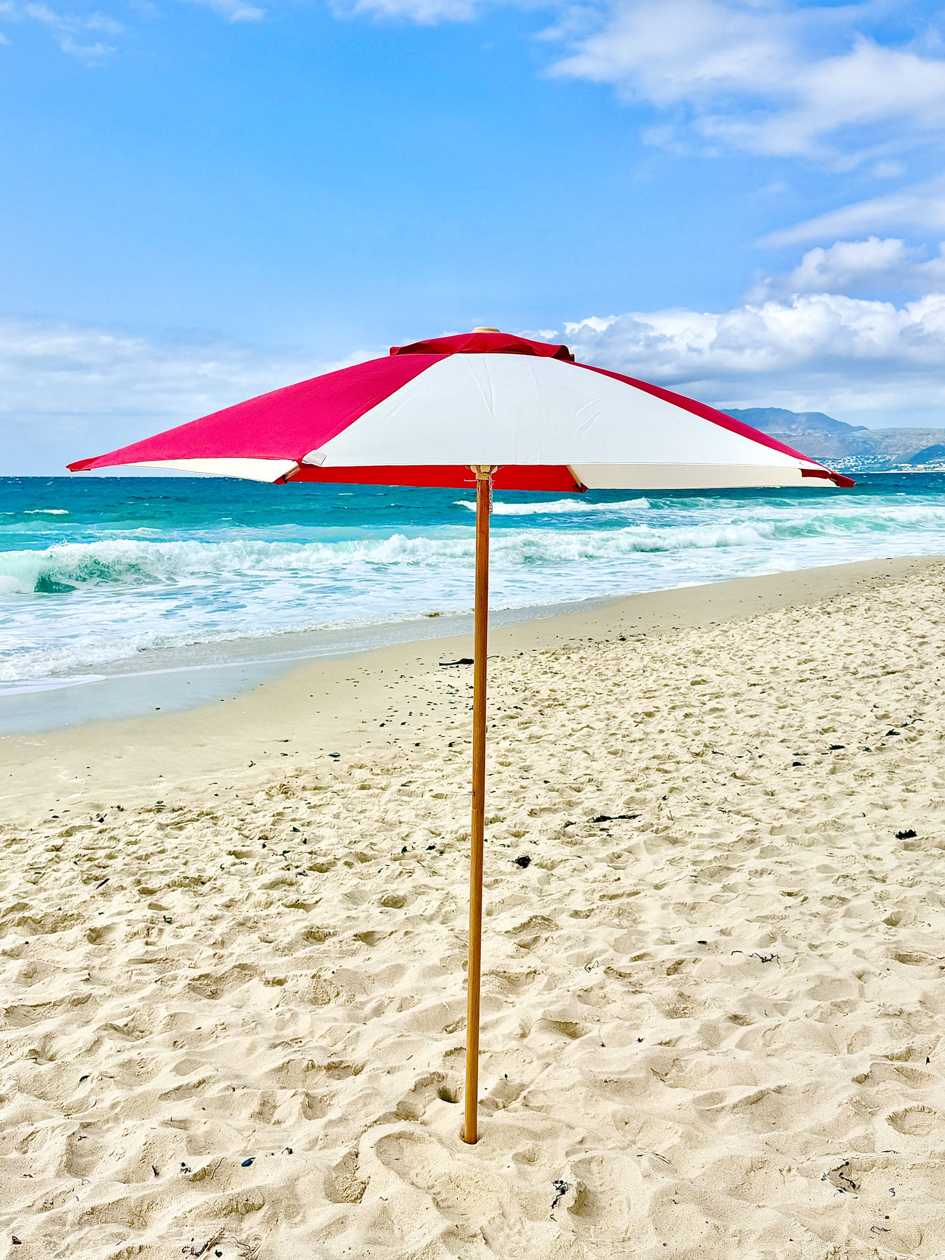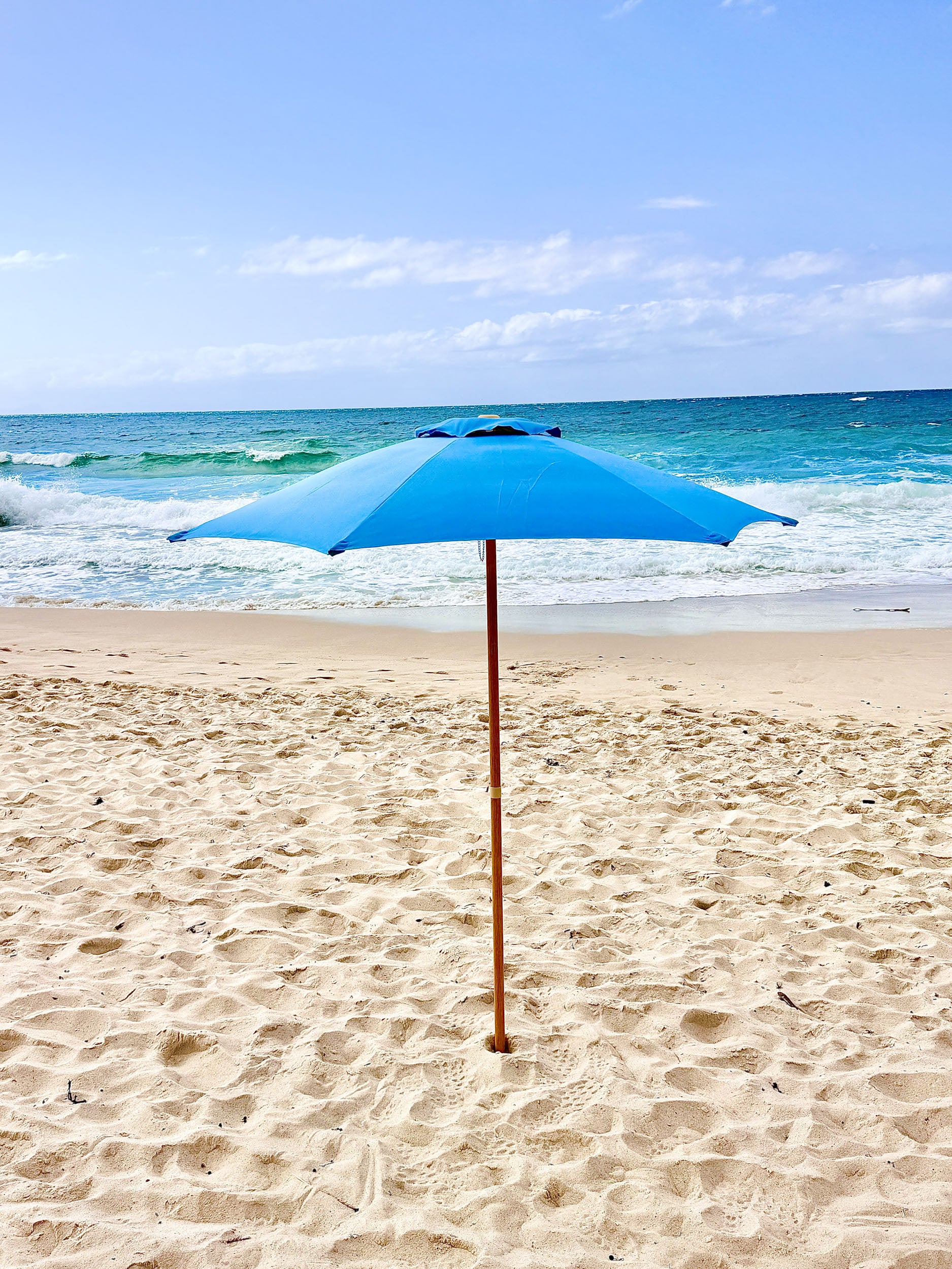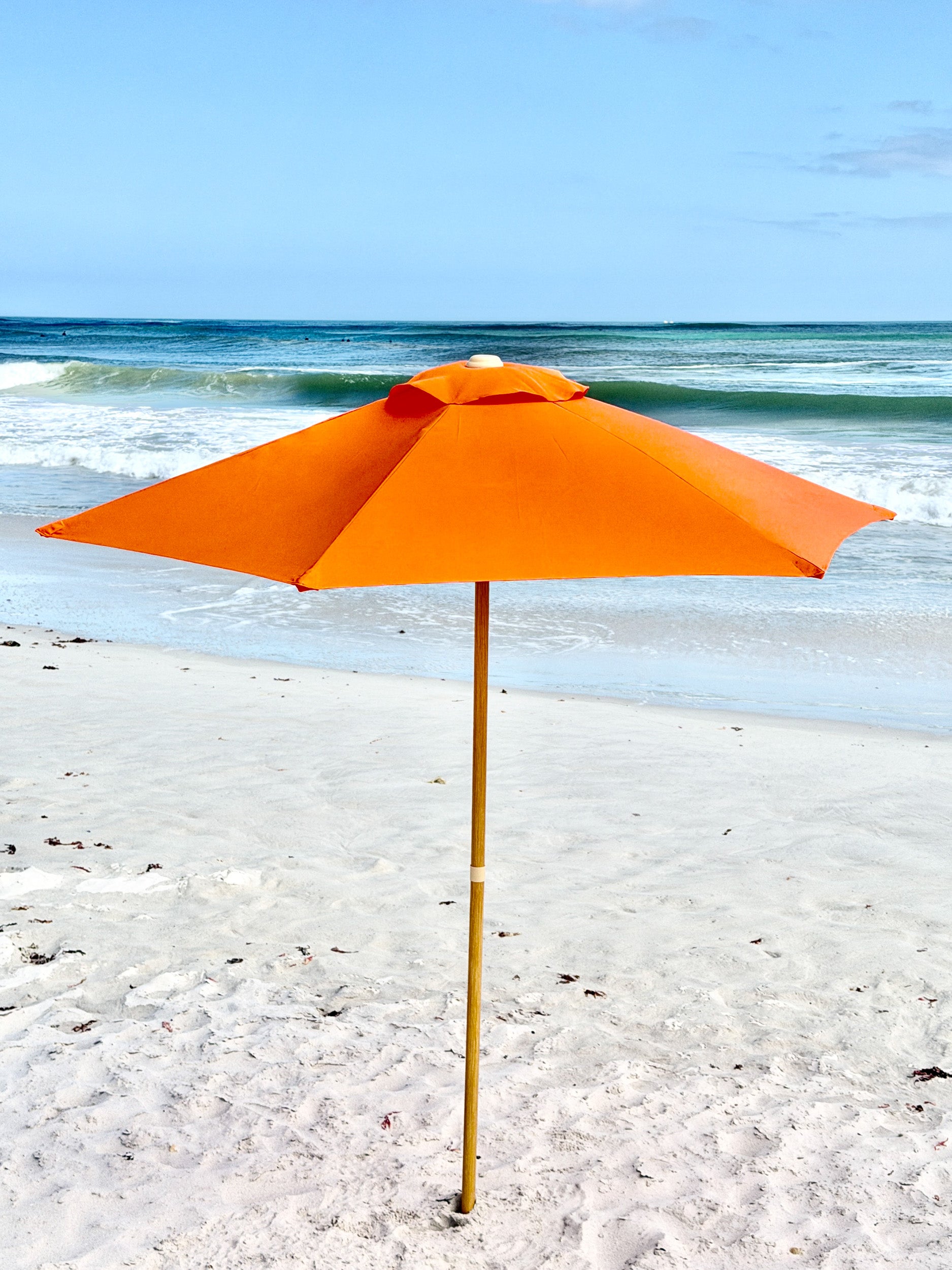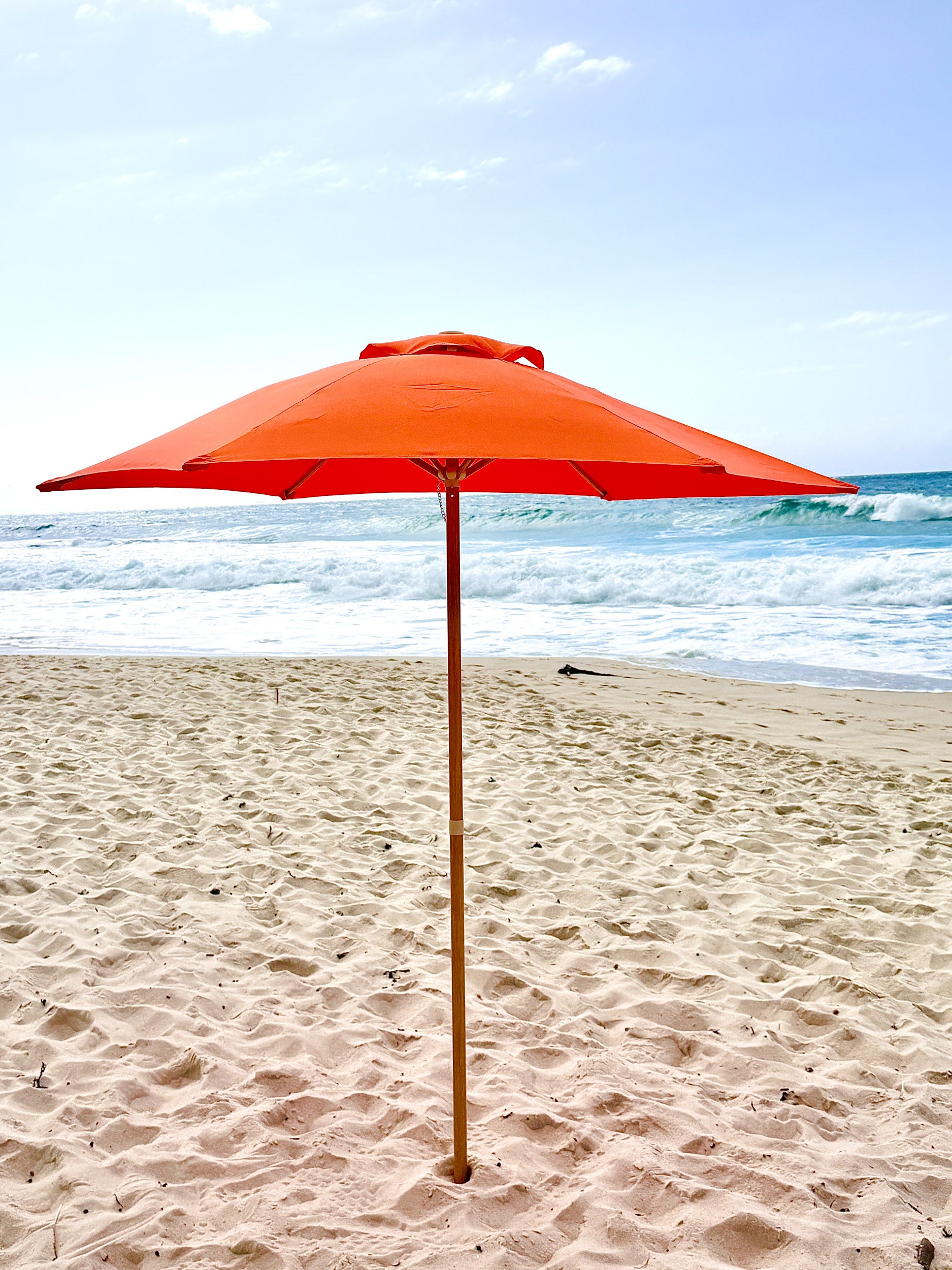 Built for durability and effortless setup, The Sol umbrella features a strong structure and a high-quality canopy designed to provide generous, reliable sun protection without compromising on aesthetics. Whether you’re setting up for a relaxed family beach day or a refined seaside picnic, The Sol brings both function and visual impact to your space.